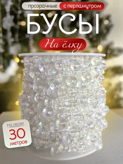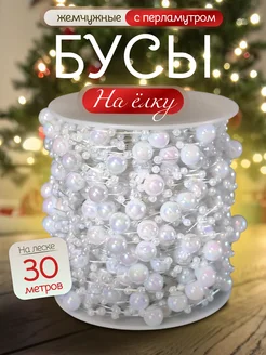 Бусы на елку с перламутром 10 м