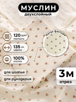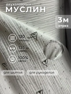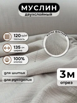 Ткань для шитья муслин 135 см, 120 г м2, отрез 3 метра