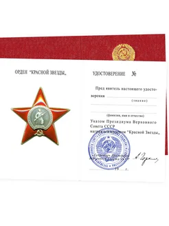 Удостоверение Орден Красной Звезды, СССР, Горкин, копия
