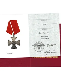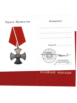 Бланк удостоверения к награде РФ Орден Мужества, подпись
