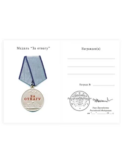Удостоверение медали За Отвагу Россия, с печатью Ельцина