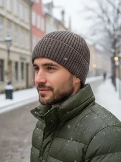 Шапка с отворотом тыковка зимняя демисезонная