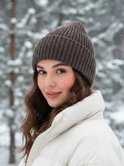 Шапка бини зимняя осенняя с флисовой подкладкой