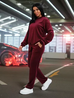 Костюм спортивный велюровый со штанами бордовый