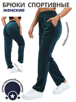 Брюки спортивные прямые с высокой посадкой велюровые