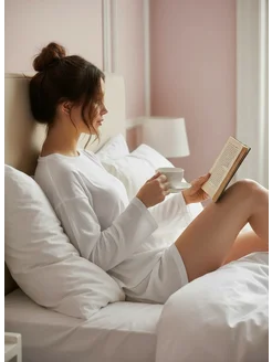 Пижама с шортами и лонгсливом оверсайз хлопок