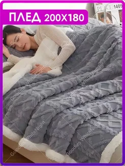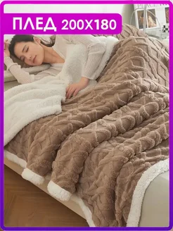 Плед 200х220 см плюшевый мягкий для дивана кровати