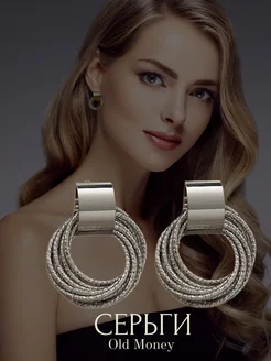 Серьги кольца под серебро, у2к бижутерия, вечерние, винтаж