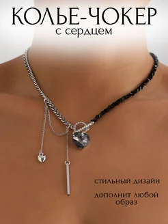 Цепочка чокер на шею с сердечком, бижутерия под серебро
