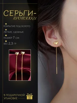 Серьги протяжки под золото, висячие бижутерия
