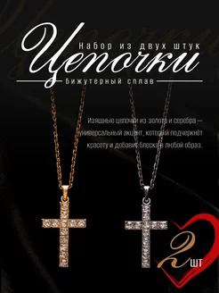 Набор 2 Цепочки с крестиком на шею, женская бижутерия