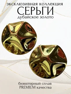 Серьги-гвоздики дубайское золото крупные объемные, бижутерия
