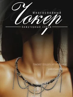Чокер цепочка женская на шею, бижутерия у2к под серебро