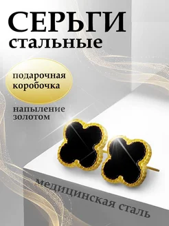Серьги клевер, позолоченный гвоздик, бижутерия
