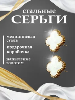 Серьги белый клевер, позолоченный гвоздик, медицинская сталь
