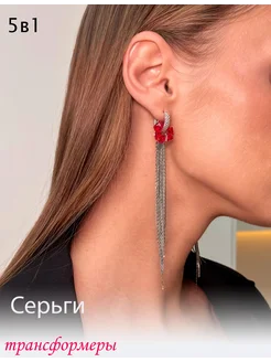 Серьги красные конго кольца с подвесками кисточками
