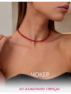 Чокер красный на шею из алмазного стекла