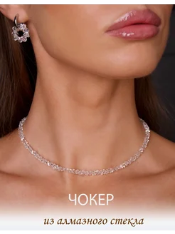 Чокер на шею из алмазного стекла прозрачный радужный