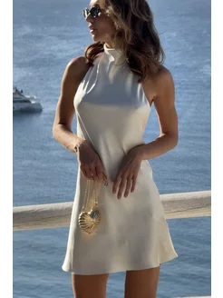 Платье вечернее в пол с открытой спиной шелковое для невесты