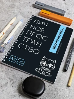 Чёрный блокнот А5 в клетку на кольцах
