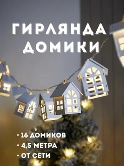 Новогодняя интерьерная гирлянда деревянные домики от сети