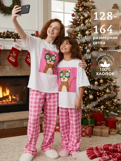 Пижама новогодняя оверсайз со штанами хлопок 100%