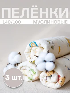 Пеленки для новорожденных муслиновые, 140х100, 3 шт