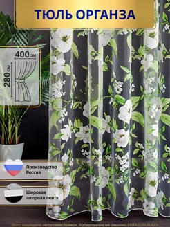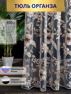 Тюль органза в гостиную и спальню 400х270 с рисунком цветы