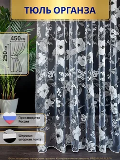 Тюль органза в гостиную и спальню 450х250 с рисунком цветы
