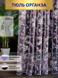 Тюль органза в гостиную и спальню 400х250 с рисунком цветы