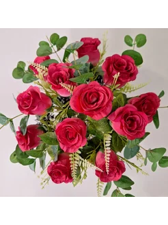 Корзина ритуальная на кладбище "Розы и эвкалипт"