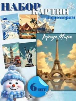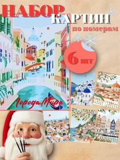 Мини набор картин по номерам 20х30 Города мира 6 в 1