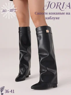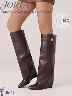 Сапоги кожаные на каблуке