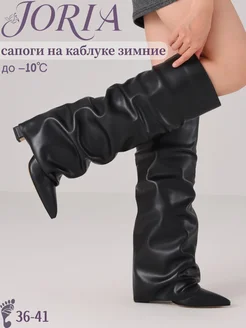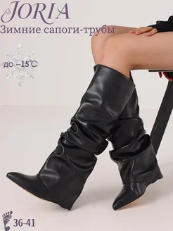 Еврозимние сапоги на каблуке с плиссировкой