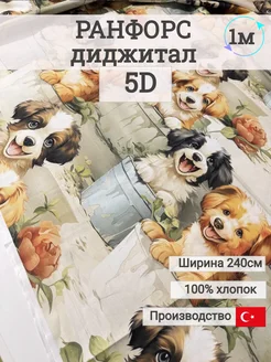 Ткань для шитья, ранфорс 5D "Собачки", отрез 1*2,4м