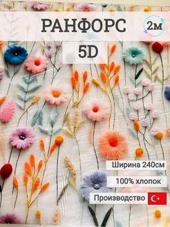 Ткань для шитья, ранфорс 5D "Цветы", отрез 2х2,4м