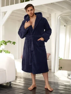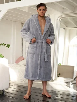 Махровый халат теплый с капюшоном для бани