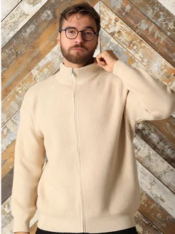 Кардиган молочного цвета на молнии вязаный шерстяной
