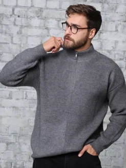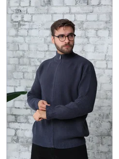 Кардиган тёмно-синего цвета на молнии вязаный шерстяной
