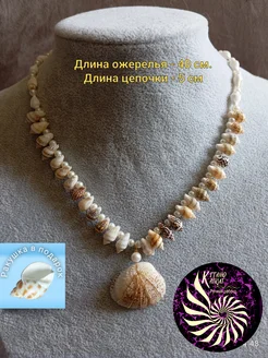 Бусы (ожерелье) из ракушек, кулон с медной проволокой