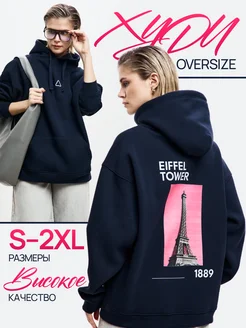 Худи оверсайз y2k с принтом Эйфелевой башни