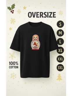 Футболка оверсайз русский стиль с принтом Матрёшки