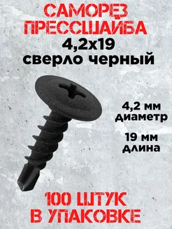 Саморез с прессшайбой 4.2х19 сверло, черный фосфат (100 шт.)