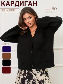 Кардиган вязаный укороченный на пуговицах с карманами
