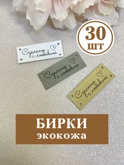 Бирки кожзам пришивные "Сделано с любовью" 15х40 мм - 30 шт