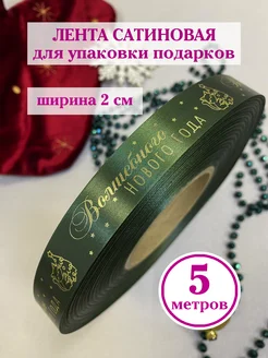 Лента подарочная Волшебного Нового года, зеленая, 5 метров