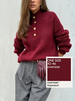 Свитер оверсайз вязаный удлиненный с воротником стойкой