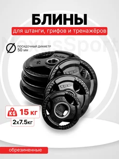 Блины 2×7,5 кг для штанги и гантелей, олимпийский диск 50 мм