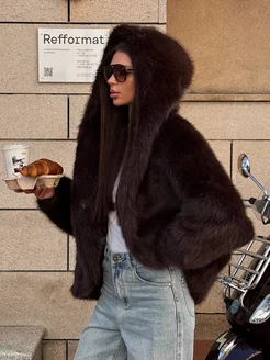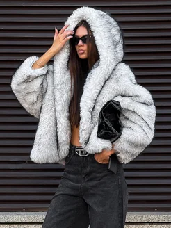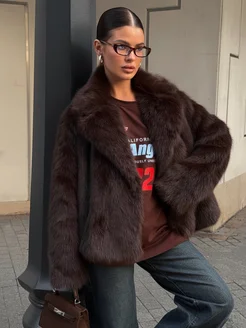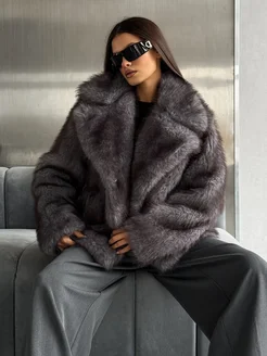 Шуба искусственная короткая демисезонная оверсайз