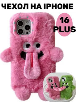 Чехол на iPhone 14 Pro плюшевый Мальтипу с ушками